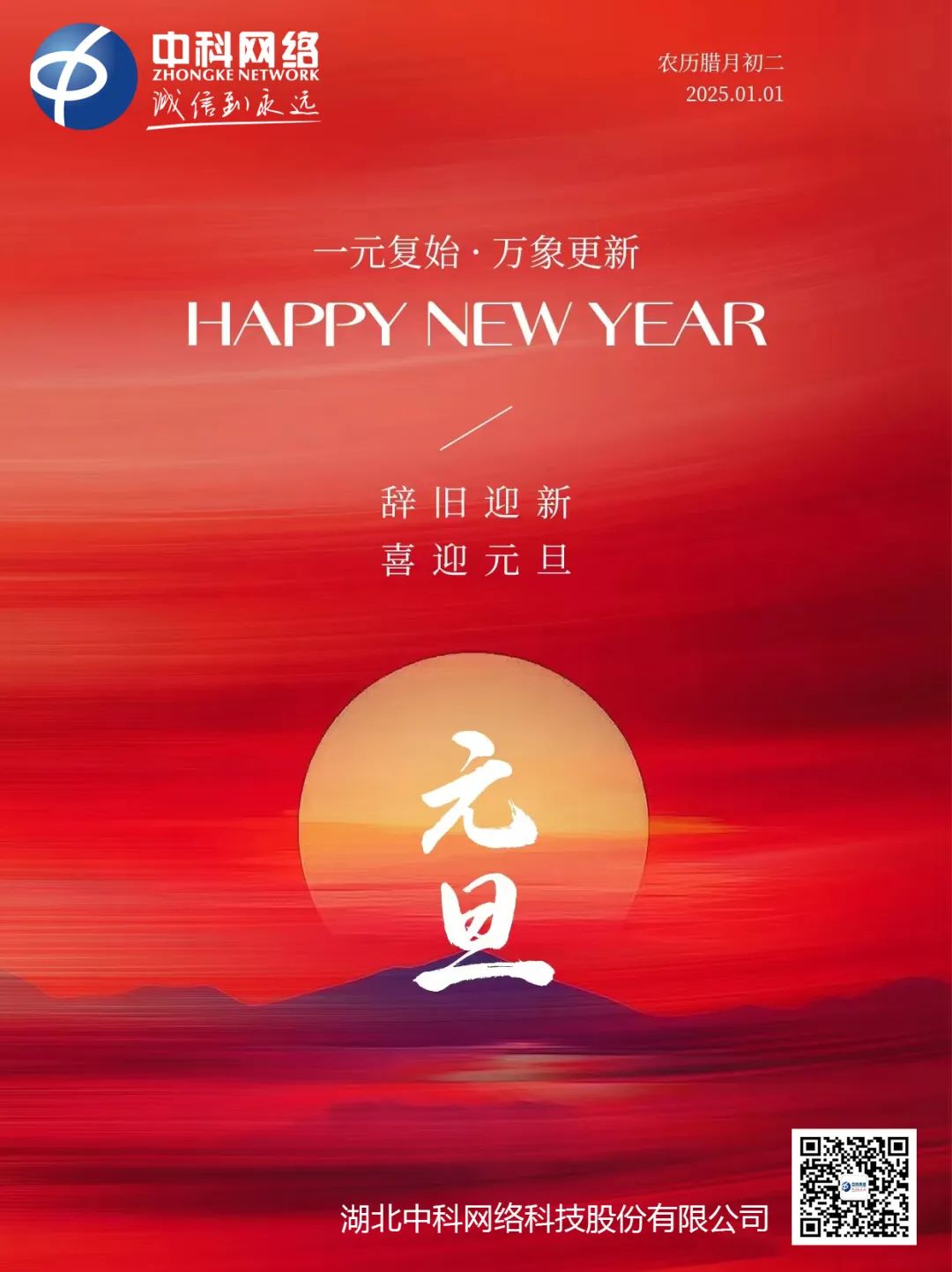 新年新气象,启航新征程。在这辞旧迎新的美好时刻,中科网络愿大家在新的一年里,携手并进,共创辉煌,幸福安康,成就梦想!